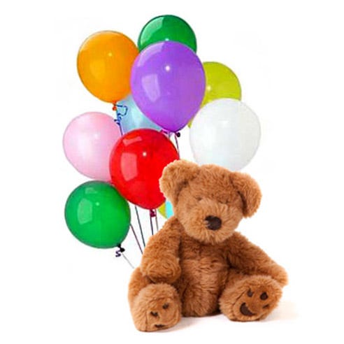 Teddy with 9 Balloons. LAC02 In Liepaja by courier. Buy now here. The best florists in Liepaja, 20 years of experience, high quality, low price. Composition could vary from the picture below depending on the season and the availability of at the time. Only with us do customers get the best service. Buy with confidence - make people happy today! We use only the freshest materials to ensure your order is of the highest standard.